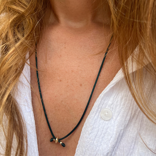 Soul koleksiyonuna ait 2in İpli Kolye, premium ip ve 14k altın kullanılarak el emeğiyle üretilmiştir. Tüm Two Tantes ipli kolyeler, 14k altın logo charm ile birlikte istenilen uzunluğa göre ayarlanabilir şekilde premium iplerle özenle tasarlanmıştır.