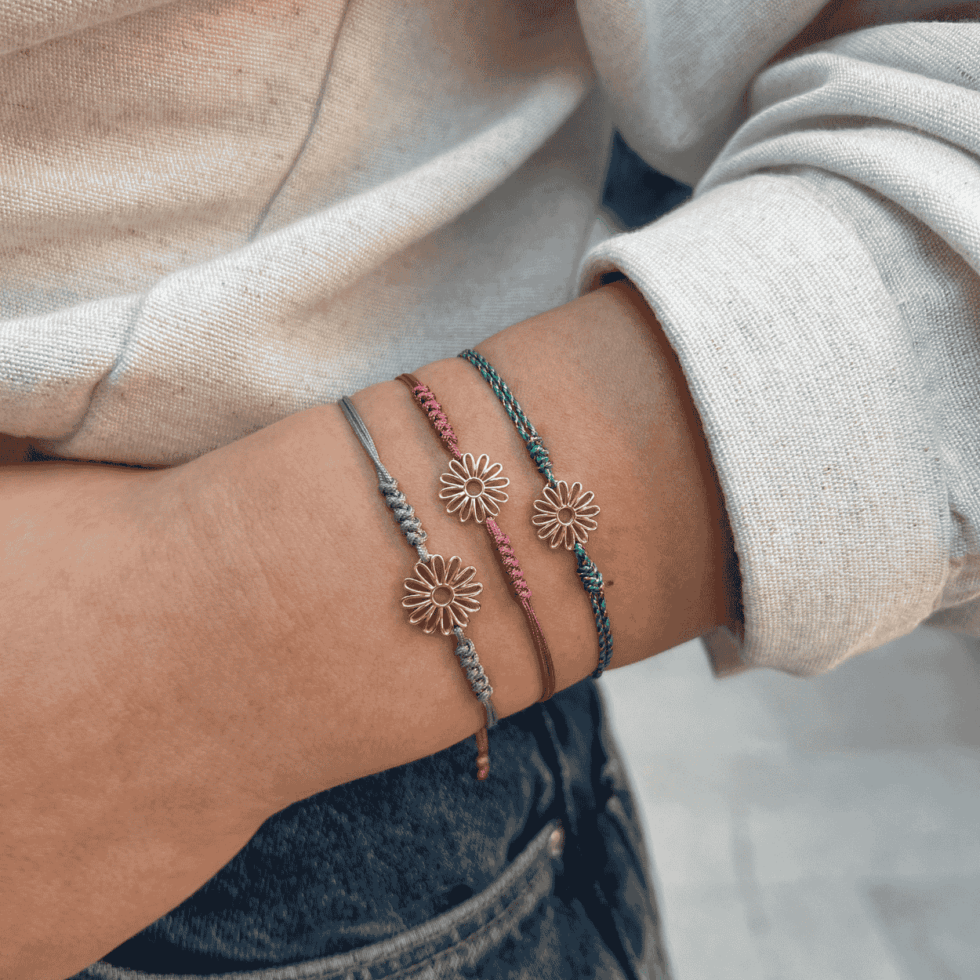 Soul koleksiyonuna ait Mini Daisy İpli Bileklik, premium ip ve 14k altın kullanılarak el emeğiyle üretilmiştir. Tüm Two Tantes ipli bileklikler, 14k altın logo charm ile birlikte her bileğe uygun ayarlanabilir şekilde premium iplerle özenle tasarlanmıştır.