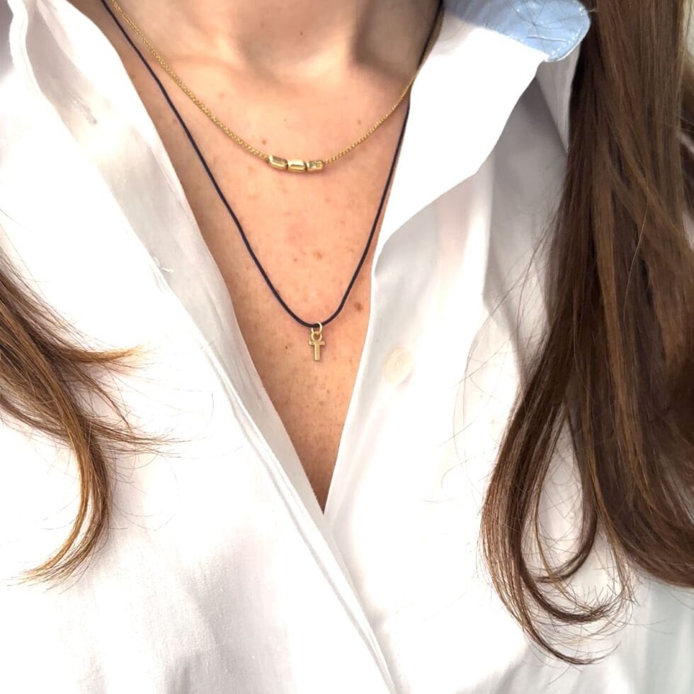 Mini Characters koleksiyonuna ait Minitial İpli Kolye, premium ip ve 14k altın kullanılarak el emeğiyle üretilmiştir. Tüm Two Tantes ipli kolyeler, 14k altın logo charm ile birlikte istenilen uzunluğa göre ayarlanabilir şekilde premium iplerle özenle tasarlanmıştır.